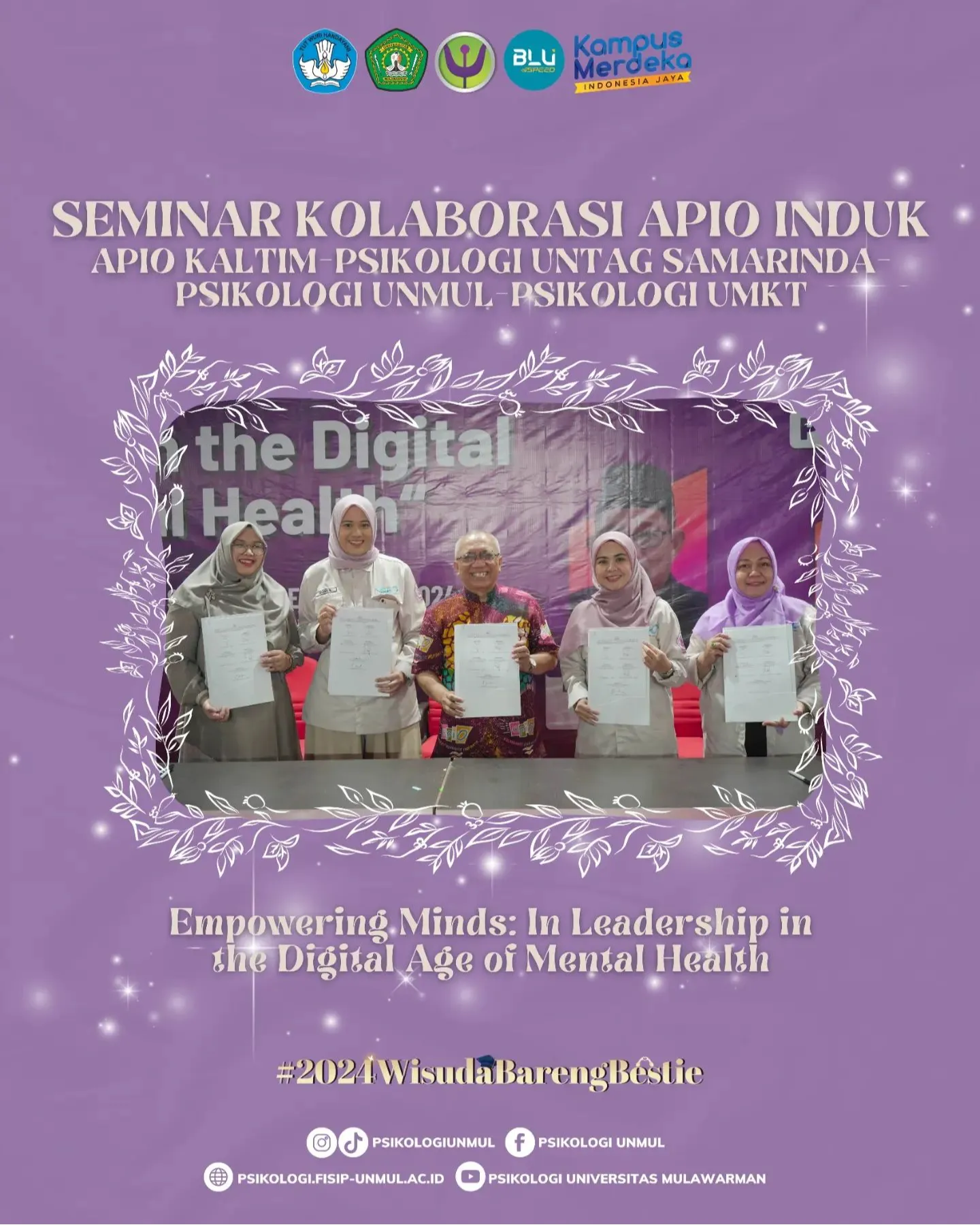 Dalam rangka ulang tahun APIO ke-25, @apio_kaltim mengajak Psikologi Unmul berkolaborasi bersama dengan 2 Kampus Psikologi lainnya, yakni Psikologi Univeristas 17 Agustus 1945 (Untag) Samarinda dan Psikologi Universitas Muhammadiyah Kalimantan Timur (UMKT) untuk mengadakan Semiar Hybrid.